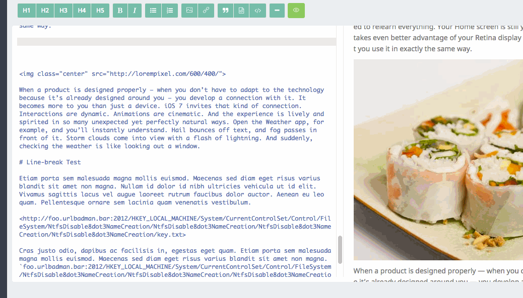 內容量多的媒體型網站,必須盡可能增加文章上稿的效率,我們特別為這個網站設計了強大的 Markdown 語法編輯器,由我們的 Windspeaker 專案改良而來,藉由簡潔的指令語法加上即時預覽,可以讓文章上稿的速度提升非常多,省去排版與貼圖的煩惱