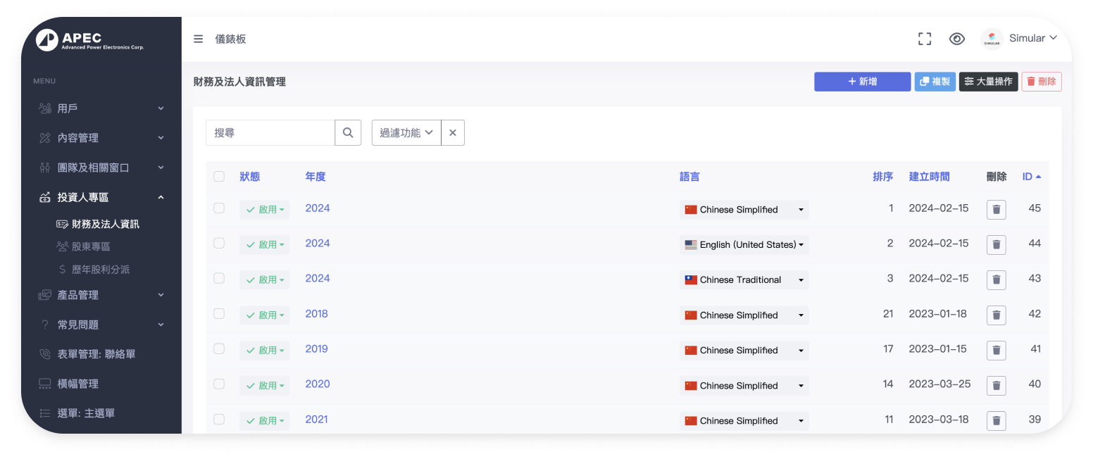 透過夏木樂設計的直觀管理介面,上架人員可以輕鬆上傳和查看公司財報及投資人相關資訊,提升資訊管理效率。